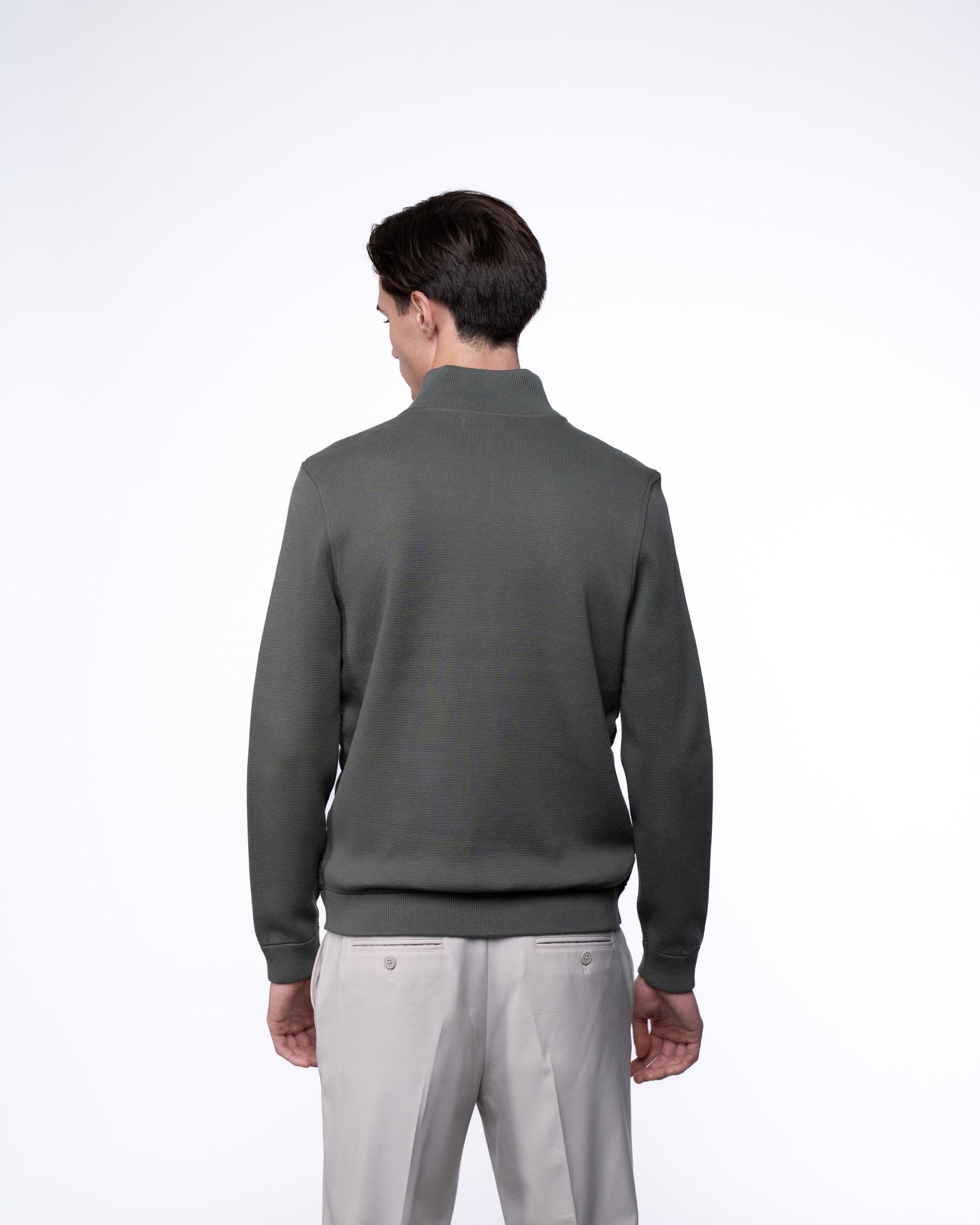 Kurtka Hybrydowa Męska Premium - Oliwkowy Sweter Rozpinany Pikowany