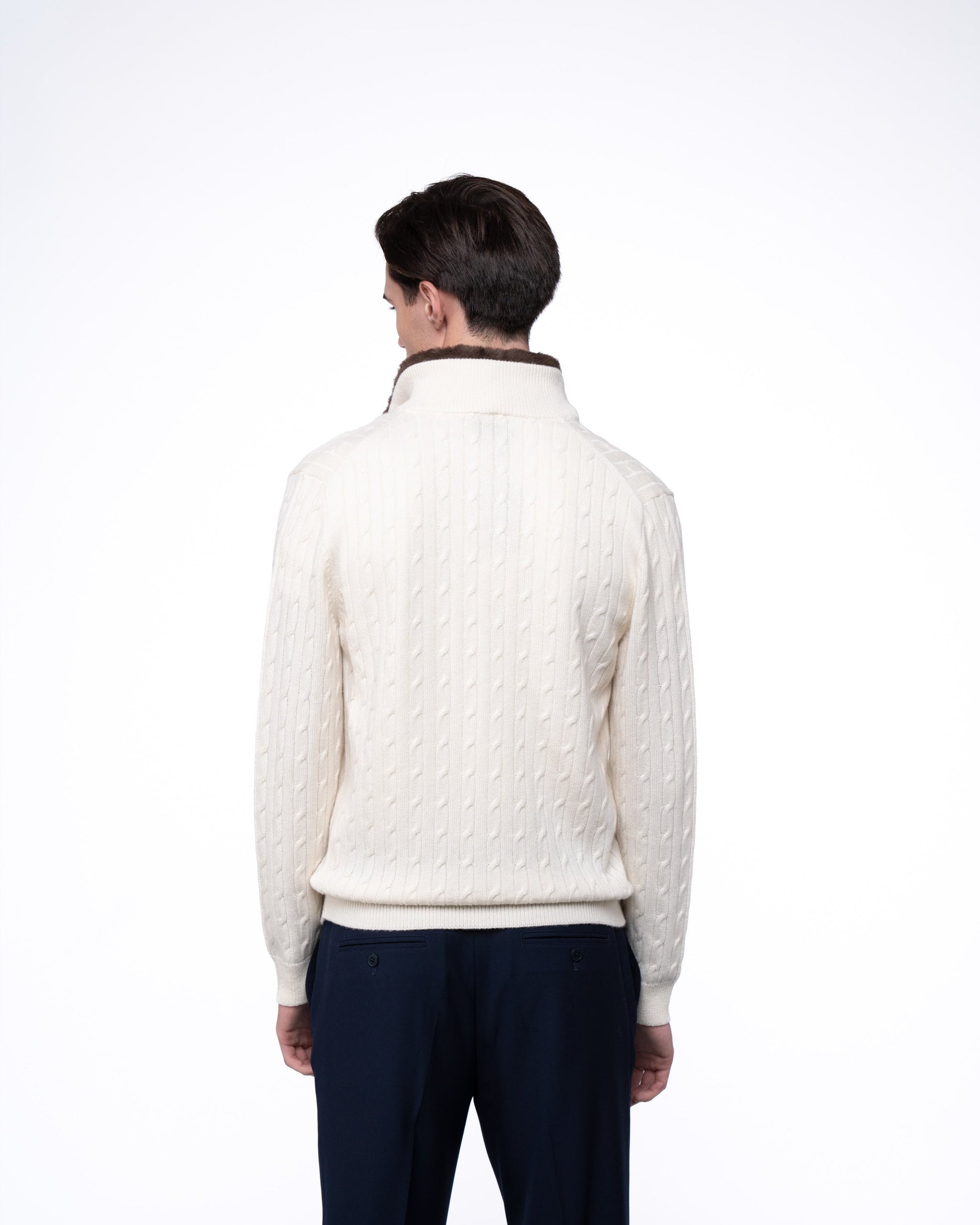 Sweter Merino & Kaszmir Quarter Zip - Beżowy Splot Warkoczowy