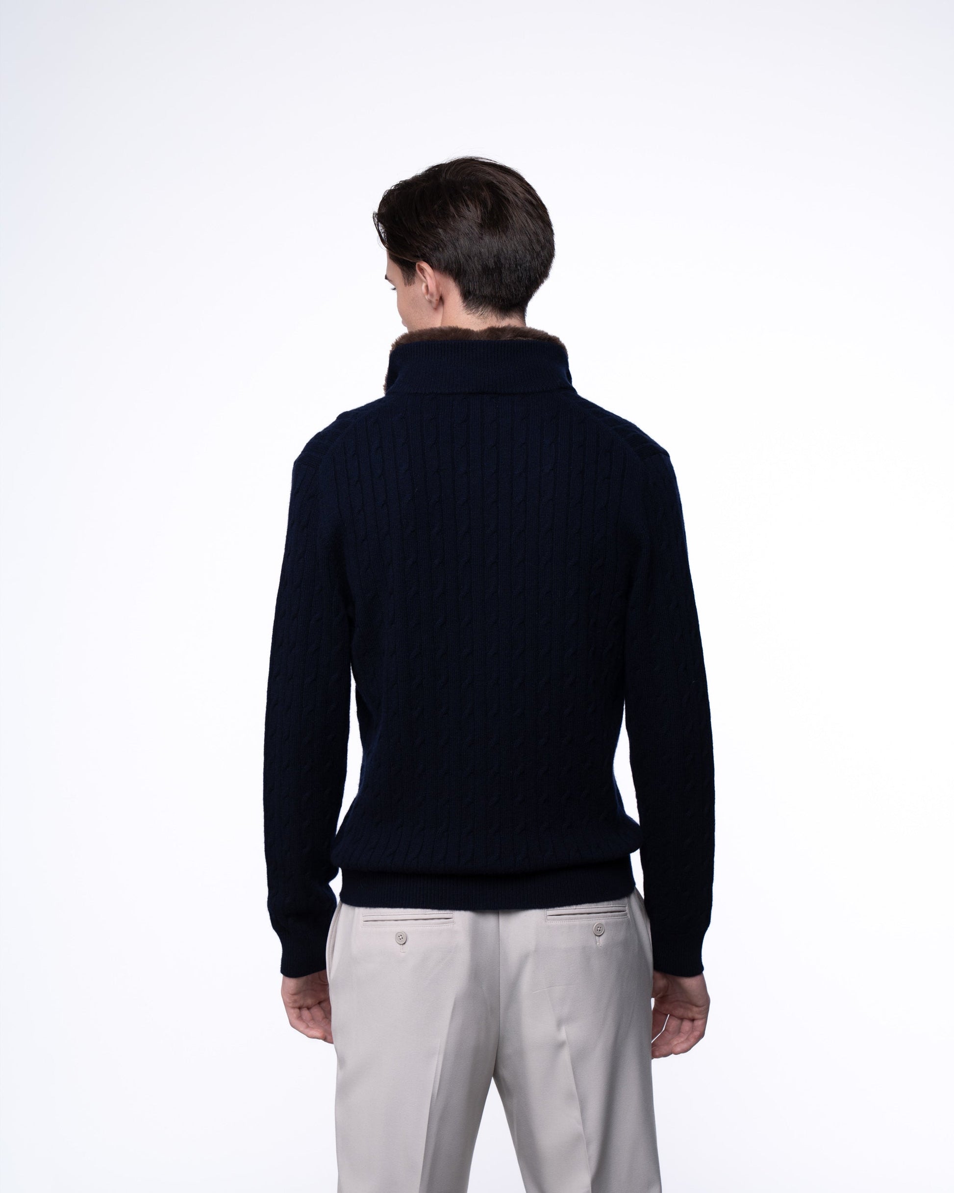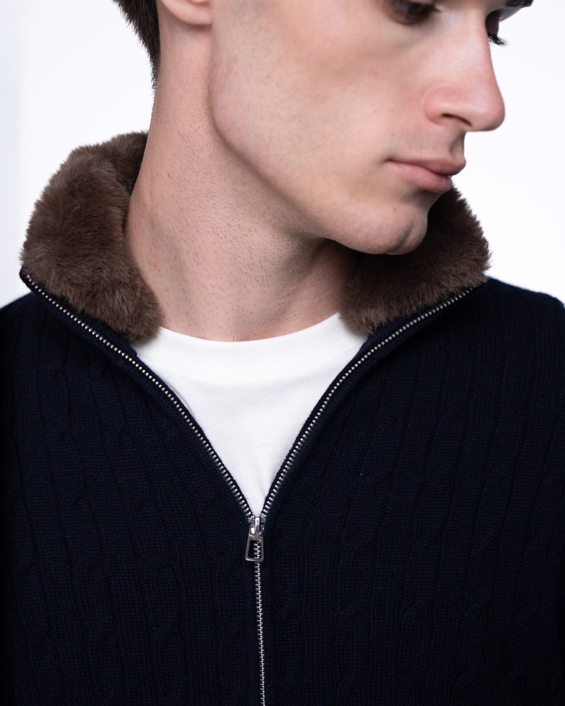 Sweter Rozpinany Merino & Kaszmir - Granatowy Splot Warkoczowy