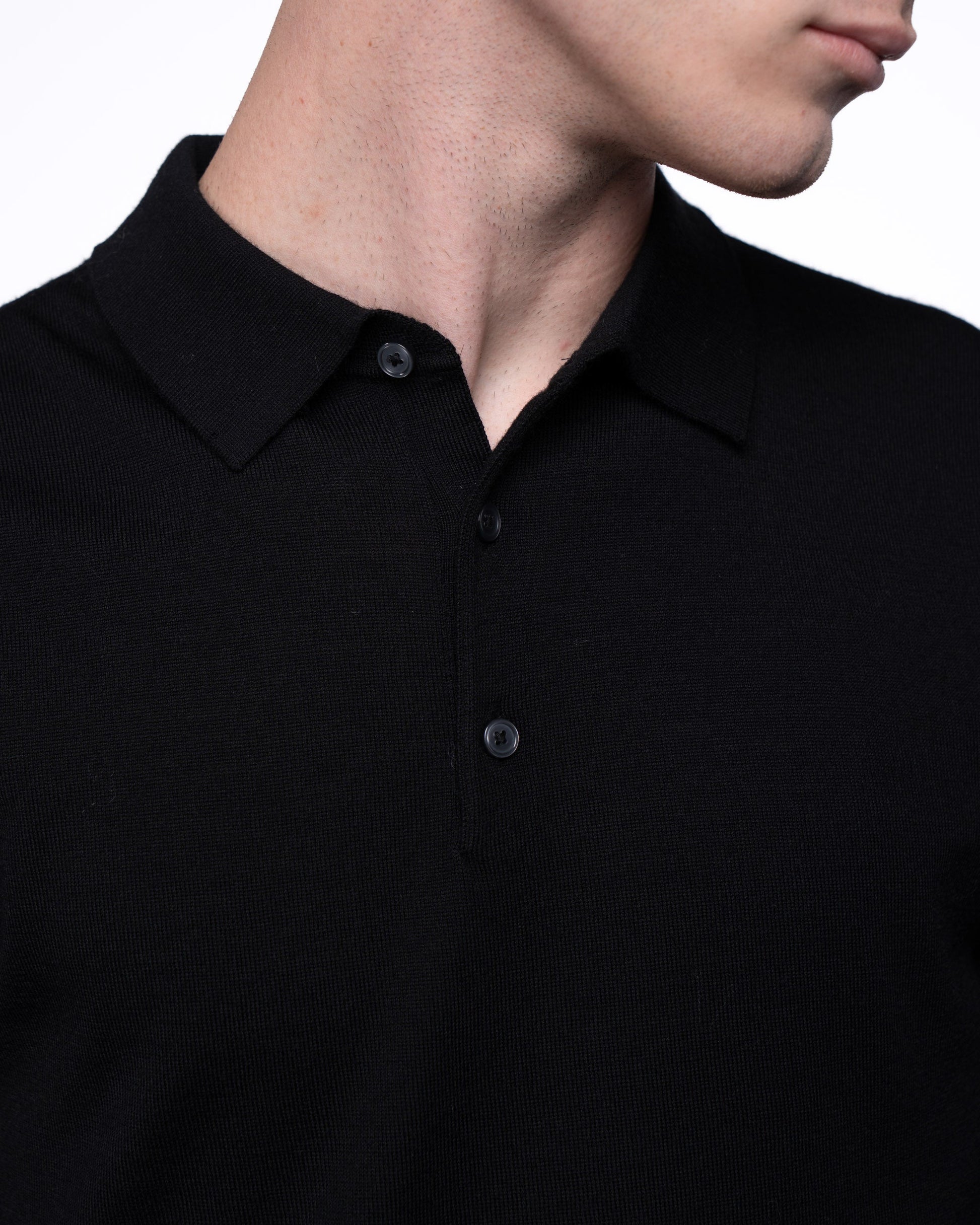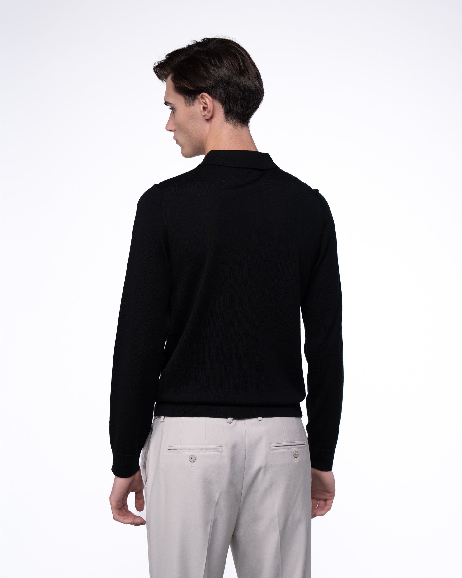 Polo Merino z Długim Rękawem Premium - Czarny Longsleeve Dzianinowy